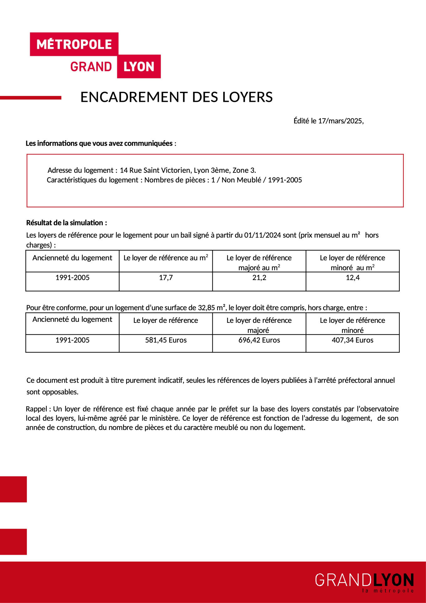 EXCLUSIVITÉ - Beau studio de 32,85 m2, tout juste rénové, très lumineux et qui bénéficie d'une vue dégagée. La pièce de vie profite de 2 grandes fenêtres avec volets roulants, la cuisine ouverte est aménagée d'un meuble avec évier, placards et plan de travail, elle est équipée d'une plaque de cuisson et d'une hotte (cf photo). Etage élevé avec ascenseur à l'étage. Jolie salle de bains (baignoire avec pare-douche en verre, meuble vasque avec miroir lumineux), wc séparés. Placards. Une cave en sous-sol et un emplacement privatif de stationnement en sous-sol complètent ce bien. Loyer hors charges de 696 euros + provisions pour charges de copropriété incluant la taxe des ordures ménagères de 60 € soit un loyer total de 756 €. Honoraires de location de 10€ TTC par m2 soit 328,50 € TTC. Honoraires d'état des lieux de 3€ par m2 soit 98,55 € TTC. DPE C. Chauffage et eau chaude individuels par chaudière au gaz de ville (marque Saunier Duval). Visite du bien si vos revenus (locataire et éventuellement garants) correspondent à minimum 3 fois le montant du loyer charges incluses, soit minimum 2.270 euros par mois, 27.200 euros par an; nous vous conseillons, pour votre sécurité dans votre recherche de location, de rentrer votre dossier sur le site du gouvernement "Dossier facile" puis de communiquer le lien de votre "dossier facile" .