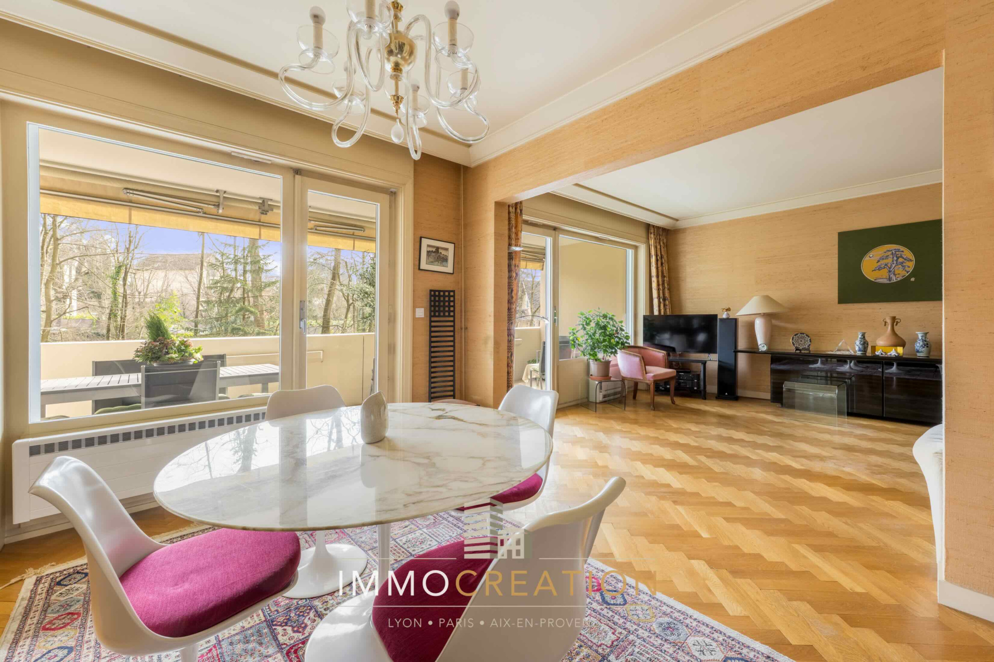 EXCLUSIVITÉ du Cabinet IMMOCREATION, au sein d'un Parc privé aux arbres centenaires, vous aurez l'impression d'être en vacances dans ce très bel appartement de 5 pièces dont la pièce de vie et la cuisine déjeunatoire ouvrent sur une grande terrasse exposée plein sud, l'espace nuit est composé de 3 chambres dont une suite principale (avec sa salle de douche et sa pièce dressing), une autre salle de bains; les chambres ouvrent sur un balcon qui surplombe également le parc. Appartement très lumineux, baigné de soleil, et au calme, qui bénéficie de la climatisation. Cette résidence de grand standing a été édifiée par Pitance. Complètent ce bien rare: Un garage fermé avec prise de chargement électrique, une place de parking privative, une cave. Dans le Parc, vous pourrez profiter du bel espace piscine, entièrement sécurisé, avec vestiaires et douches, et surveillé par un gardien. Vous bénéficiez également des cours de tennis privatifs à la résidence. Beaux espaces de jeux pour enfants, des bancs sont également disséminés dans le parc pour se reposer, ou lire tranquillement en pleine nature. Les charges de copropriété sont de 386 euros par mois, elles incluent le chauffage minimum, la consommation d'eau, l'entretien du Parc, de la piscine, des tennis, et les gardiens. A toute proximité des commerces et transports en commun, accès Lyon très facile. Honoraires charge vendeur. Pour tous renseignements complémentaires, photos, diagnostics, et visites privées, merci de contacter Anne de PLANCHARD au 0620056643 .